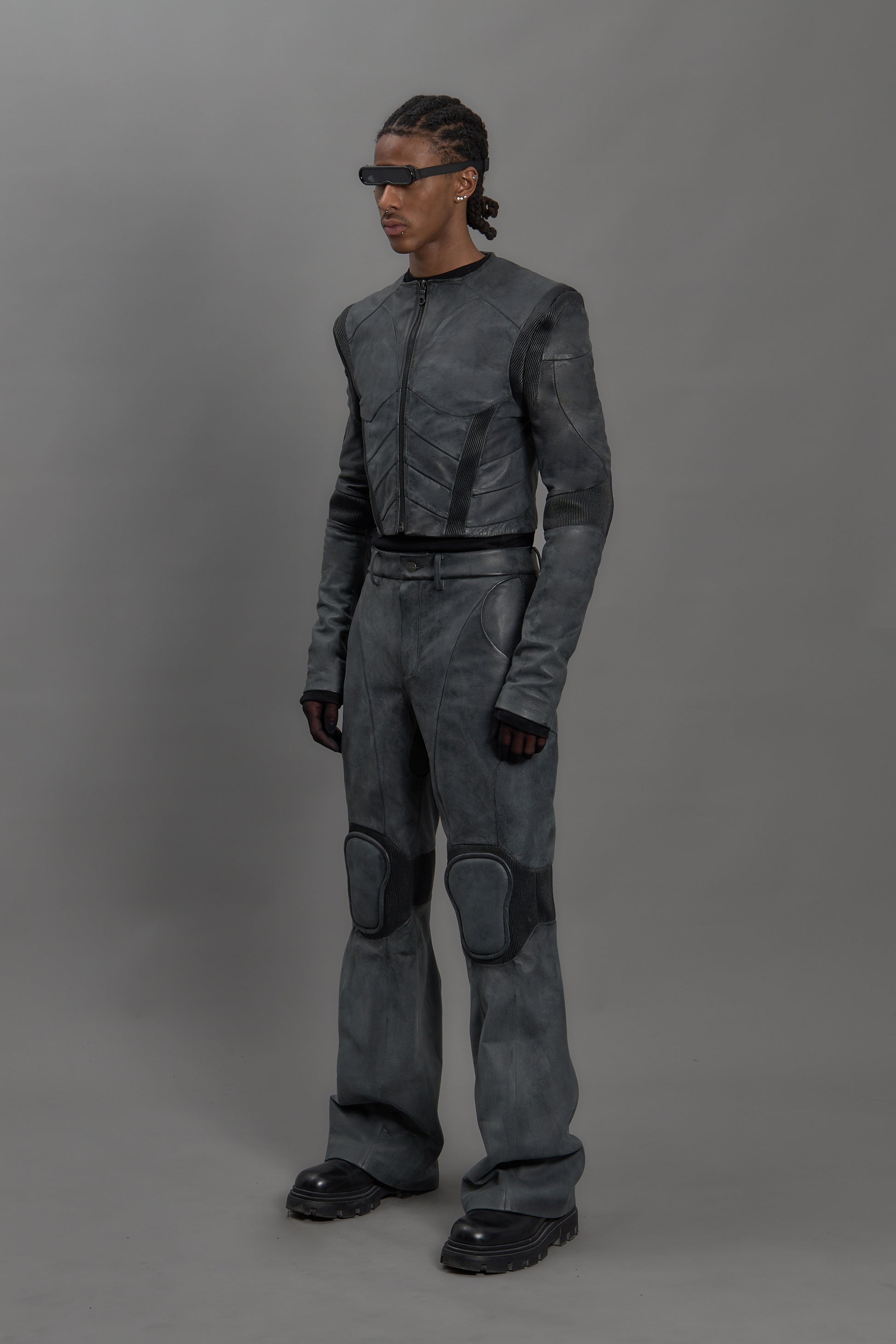 Panelled biker jacket with ergonomic stretch leather panels for maximised movement.